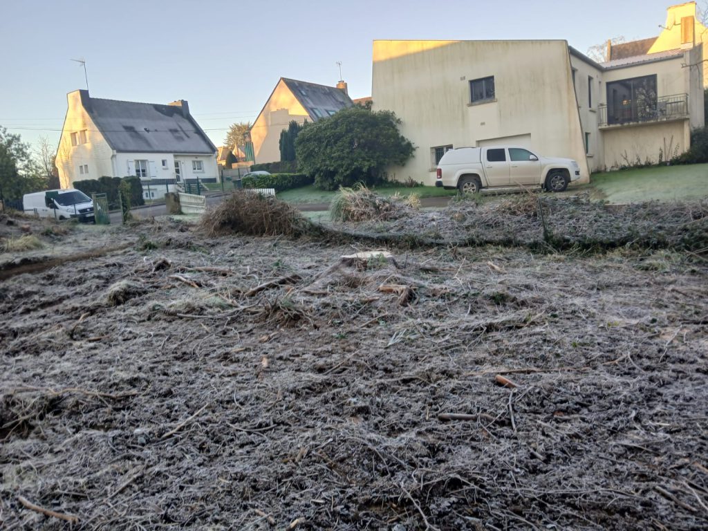 Suite à l’abattage de plusieurs sujets sur une parcelle en cœur de lotissement, notre client avait le souhait de pouvoir remettre le terrain à nu de façon à optimiser la mise en lumière et envisager une future construction pour un acheteur potentiel.