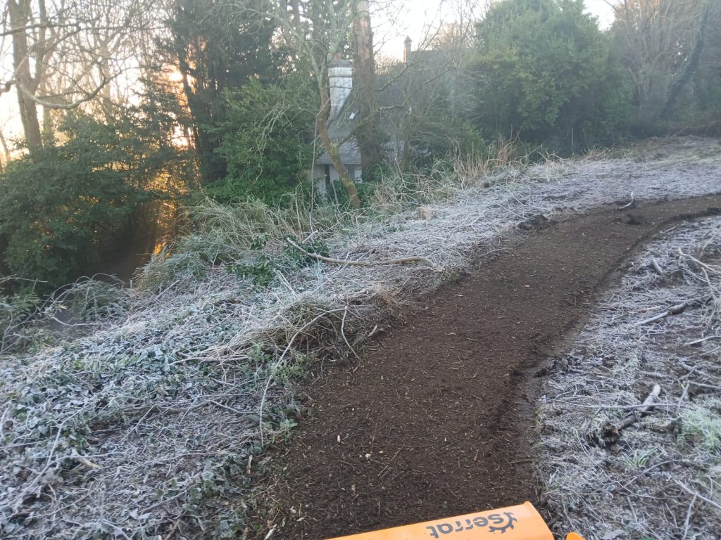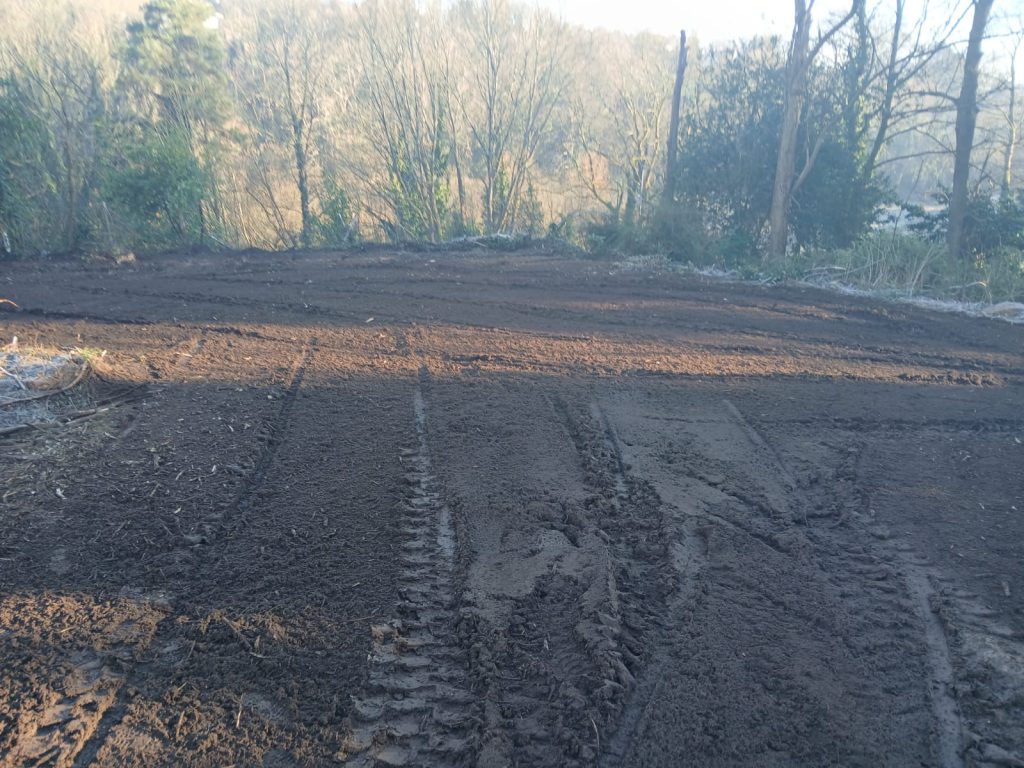 Un rognage a été réalisé à la suite de façon à traiter également les souches. Avec notre rogneuse et sa tête allant jusqu’à 30cm de profondeur environ, l’ensemble des souches ont été broyées et les rémanents (mélange terre et copeaux) régalés sur place.